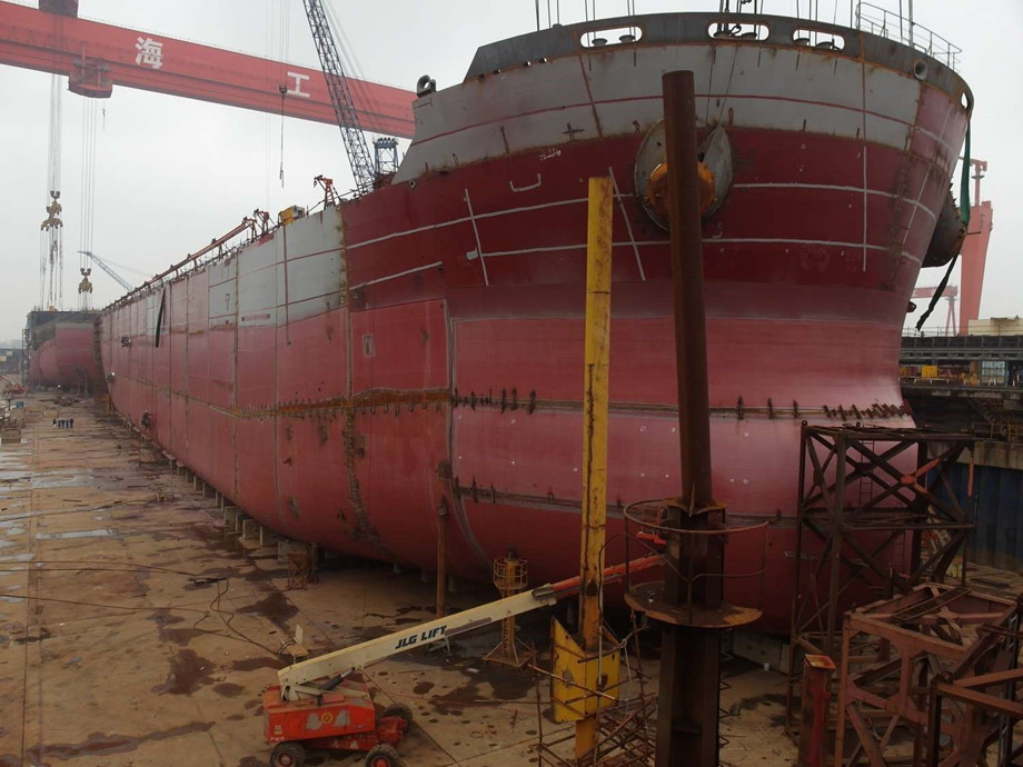 China Shipping Industry New Building project using Transozinc Silicate Shopprimer 1.53, Transpoxy Masterbond 467, Transurethane Finish 343, Transocean Cleanship 295.
